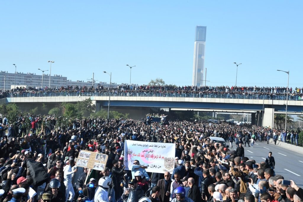 وقد ردد المواطنون طوال الطريق الذي اتخذه الموكب الجنائزي العديد من الشعارات التي عبروا من خلالها عن عرفناهم للمجاهد الذي أفنى عمره ليحفظ استقرار البلد في هذا الوضع الحرج والمفصلي من تاريخه, منها “خاوة خاوة والقايد صالح مع الشهداء” و “قايد صالح بطل الامة” و “الله أكبر”.